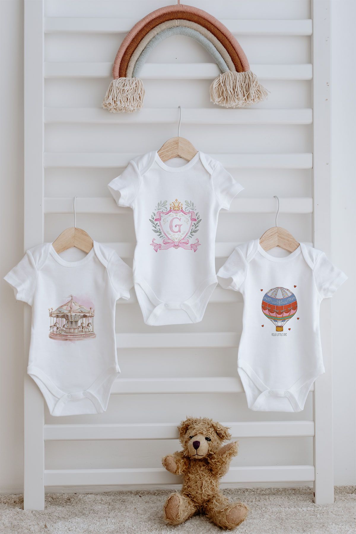 3'lü Bebek Body - Pink Royal Series - O Harfi