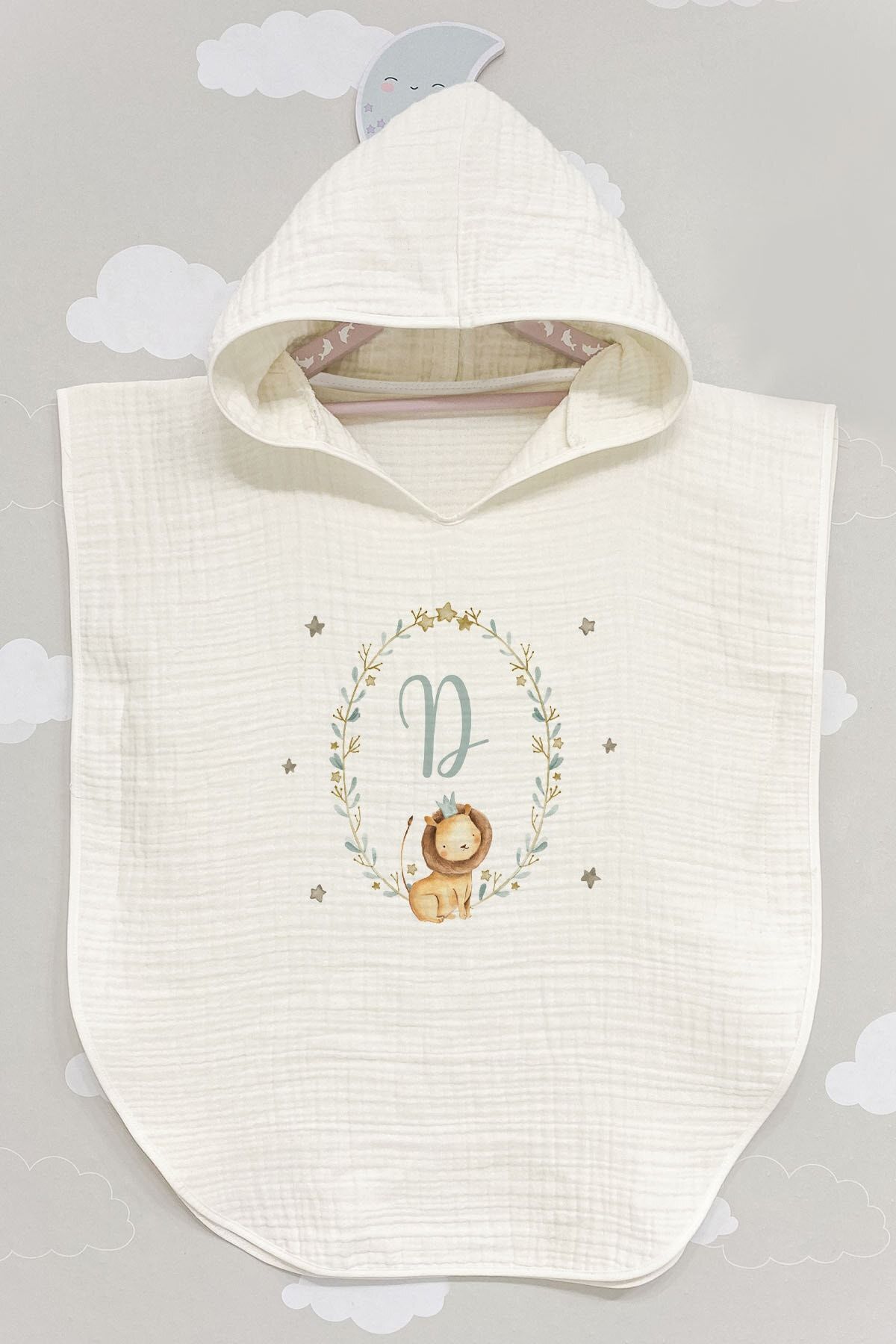 Tuğba Kuğu Harf Serisi Panço, isme özel işleme detaylarıyla %100 pamuklu yumuşak ve nefes alabilen kumaştan üretilmiştir. Banyo sonrası veya dış mekan kullanımı için pratik, konforlu ve anlam dolu şık bir seçenektir.